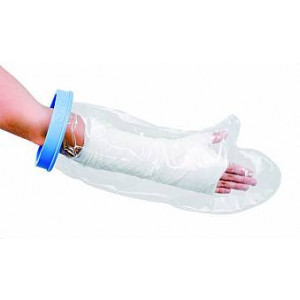 Fodera impermeabile ideata per proteggere l'ingessatura o la fasciatura durante il bagno o la doccia. La chiusura elastica impedisce all'acqua di penetrare nella fodera.