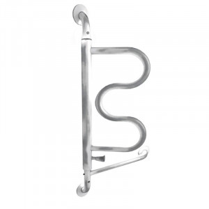Supporto per il sollevamento e la seduta installabile a parete, il maniglione ruotando per 180° accompagna i movimenti dell'utente sgravando le gambe dal peso del corpo e riducendo lo sforzo sulla schiea. Particolarmente ideale in ambienti dove non e' possibile il fissaggio nella parete alle spalle del wc di maniglioni ribaltabili.
