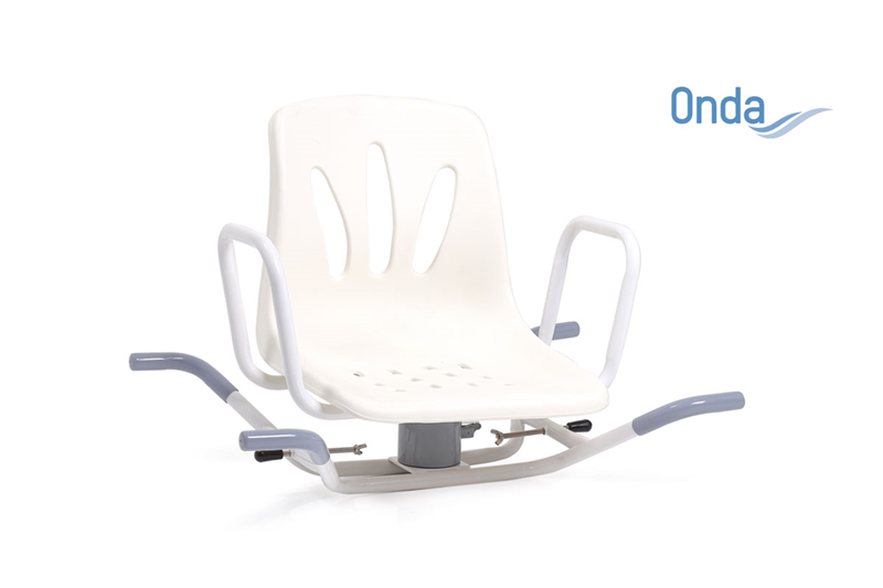 Sedile girevole per vasca in acciaio verniciato bianco.