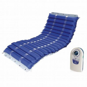 La manopola consente una facile regolazione della pressione in funzione del peso del paziente. I 18 elementi del materasso in Nylon+PVC di 10,2 cm di altezza sono particolarmente confortevoli, fissati per mezzo di bottoni, facilmente intercambiabili in caso di rottura e lavabili. Il compressore può essere facilmente adattato a tutti i tipi di letto grazie ai ganci in metallo plastificato presenti sul retro, mentre un cuscinetto in foam riduce la rumorosità e le vibrazioni del compressore. La valvola CPR (Cardio Pulmonary Resuscitation) permette uno sgonfiamento rapido del materasso per interventi di rianimazione urgenti. Il materasso può essere corredato da una resistente coperta in Nylon (OPTIONAL).