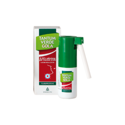 0,25% SPRAY PER MUCOSA ORALE GUSTO CAMOMILLA E MIELE 1 FLACONE PE CON POMPA DOSATRICE DA 15 ML Alle dosi consigliate l’eventuale deglutizione occasionale di Tantum Verde Gola non comporta alcun danno per il paziente in quanto tali dosi sono ampiamente inferiori a quelle comunemente utilizzate nei trattamenti con flurbiprofene per via sistemica. Tantum Verde Gola deve essere usato con cautela da pazienti con asma non allergico, infatti sono stati riportati casi di broncospasmo con flurbiprofene in pazienti con anamnesi di asma bronchiale. L’impiego del prodotto, specie se prolungato, può dare origine a fenomeni di sensibilizzazione o di irritazione locale. In tali casi occorre interrompere il trattamento e istituire, se necessario, una terapia idonea. Non usare per trattamenti protratti. Questo medicinale non richiede alcuna condizione particolare di conservazione. Gli effetti indesiderati possono essere minimizzati con l’uso della più bassa dose efficace per la più breve durata possibile di trattamento che occorre per controllare i sintomi (vedere paragrafo 4.4