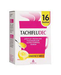 POLVERE PER SOLUZIONE ORALE GUSTO LIMONE E MIELE, 16 BUSTINE IN CARTA/AL/PE Durante il trattamento con paracetamolo, prima di assumere qualsiasi altro farmaco controllare che non contenga lo stesso principio attivo, poiché se il paracetamolo è assunto in dosi elevate si possono verificare gravi reazioni avverse. Invitare il paziente a contattare il medico prima di associare qualsiasi altro farmaco (vedere anche la sezione 4.5). È sconsigliato l’uso del prodotto se il paziente è in trattamento con antiinfiammatori. Non somministrare per oltre 3 giorni consecutivi senza consultare il medico. Tachifludec gusto limone contiene 4,9 mmoli (112,9 mg) di sodio per bustina; Tachifludec gusto limone e miele contiene 5,9 mmoli (135,8 mg) di sodio per bustina: da tenere in considerazione in persone con ridotta funzionalità renale o che seguano una dieta a basso contenuto di sodio. Tachifludec contiene saccarosio: i pazienti affetti da rari problemi ereditari di intolleranza al fruttosio, da malassorbimento di glucosio-galattosio o da insufficienza di sucrasi-isomaltasi non devono assumere questo medicinale. Tachifludec gusto limone contiene glucosio: i pazienti affetti da rari problemi di malassorbimento di glucosio-galattosio, non devono assumere questo medicinale. Conservare a temperatura inferiore a 25°C. Conservare nel contenitore originario per proteggere il medicinale dall’umidità e dalla luce Posologia Adulti e bambini al di sopra dei 12 anni: 1 bustina ogni 4-6 ore e fino ad un massimo di 3 bustine nelle 24 ore. Modo di somministrazione Sciogliere 1 bustina in mezzo bicchiere di acqua molto calda e, a piacere, diluire con acqua fredda per raffreddare e dolcificare come si desidera. - Bambini di età inferiore ai 12 anni. - Ipersensibilità ai principi attivi o ad uno qualsiasi degli eccipienti elencati al paragrafo 6.1. - Pazienti che assumono beta-bloccanti, inibitori delle monoaminoossidasi e antidepressivi triciclici. - Pazienti affetti da insufficienza epatica o renale, diabete, ipertiroidismo, ipertensione e malattie cardiovascolari. - I prodotti a base di paracetamolo sono controindicati nei pazienti con manifesta insufficienza della glucosio-6-fosfato deidrogenasi ed in quelli affetti da grave anemia emolitica. - Grave insufficienza epatocellulare. Trattamento sintomatico dell’influenza, del raffreddore e degli stati febbrili e dolorosi ad essi correlati, con azione decongestionante sulle prime vie aeree superiori. TACHIFLUDEC polvere per soluzione orale gusto limone: saccarosio, acido citrico anidro, sodio citrato, amido di mais, sodio ciclamato, saccarina sodica, silice colloidale anidra, aroma limone, curcumina (E 100), sciroppo di glucosio essiccato. TACHIFLUDEC polvere per soluzione orale gusto limone e miele: saccarosio, acido citrico anidro, sodio citrato, amido di mais, sodio ciclamato, saccarina sodica, aroma limone, aroma miele, caramello (E 150), silice colloidale anidra.Ogni bustina contiene: principi attivi: paracetamolo 600 mg, acido ascorbico 40 mg e fenilefrina cloridrato 10 mg pari a fenilefrina 8,2 mg. Eccipienti con effetti noti: Tachifludec gusto limone contiene: 1,817 g di saccarosio, 112,9 mg di sodio, 6,65 mg di glucosio. Tachifludec gusto limone e miele contiene: 1,892g di saccarosio, 135,8 mg di sodio Per l’elenco completo degli eccipienti, vedere paragrafo 6.1. Con l’uso del paracetamolo sono state segnalate reazioni cutanee di vario tipo e gravità, inclusi casi di eritema multiforme, sindrome di Stevens Johnson e necrolisi epidermica. Sono stati riportati casi molto rari di reazioni cutanee gravi. Sono state segnalate reazioni di ipersensibilità quali ad esempio angioedema, edema della laringe, shock anafilattico. Inoltre sono stati segnalati i seguenti effetti indesiderati: trombocitopenia, leucopenia, anemia, agranulocitosi, alterazioni della funzionalità epatica ed epatiti, alterazioni a carico del rene (insufficienza renale acuta, nefrite interstiziale, ematuria, anuria), reazioni gastrointestinali e vertigini. Con i simpaticomimetici (fenilefrina) possono manifestarsi occasionalmente stati di irritazione cutanea, tachicardia, ipertensione e molto più raramente nausea, vomito o anoressia. Segnalazione delle reazioni avverse sospette La segnalazione delle reazioni avverse sospette che si verificano dopo l’autorizzazione del medicinale è importante, in quanto permette un monitoraggio continuo del rapporto beneficio/rischio del medicinale. Agli operatori sanitari è richiesto di segnalare qualsiasi reazione avversa sospetta tramite il sistema nazionale di segnalazione all’indirizzo www.agenziafarmaco.gov.it/it/responsabili. Alle dosi consigliate, o anche nell’ipotesi in cui si dovesse assumere l’intera confezione, non dovrebbero comparire sintomi da sovradosaggio di paracetamolo. Tuttavia in caso di ingestione di dosi molto elevate di paracetamolo (superiori a 15 g), la complicanza più comunemente riscontrata è il danno epatico, che si manifesta in genere 2-4 giorni dopo l’assunzione. I sintomi precoci sono nausea, vomito e dolori addominali: la terapia idonea consigliata è la lavanda gastrica usando antidoti specifici quali acetilcisteina o metionina. Oltre 10 ore dall’ingestione potrebbe rendersi necessaria una emoperfusione. Altri sintomi da sovradosaggio, sono causati dalla fenilefrina e si manifestano con irritabilità, emicrania e aumento della pressione arteriosa. L’uso durante la gravidanza non è controindicato ma richiede cautela; la somministrazione del preparato in gravidanza e nell’allattamento deve avvenire sotto il diretto controllo del medico ed in caso di effettiva necessità. L’effetto epatotossico del paracetamolo può essere potenziato dall’assunzione di altri farmaci attivi sul fegato. Usare con estrema cautela e sotto stretto controllo durante il trattamento cronico con farmaci che possono determinare l’induzione delle monossigenasi epatiche o in caso di esposizione a sostanze che possono 